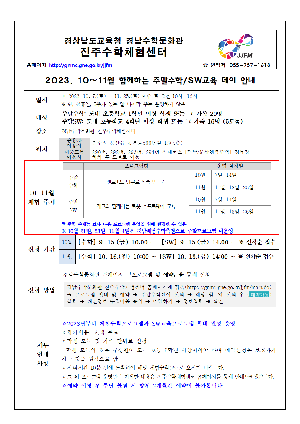 2023. 10~11월 함께하는 주말 학/SW교육 데이 안내