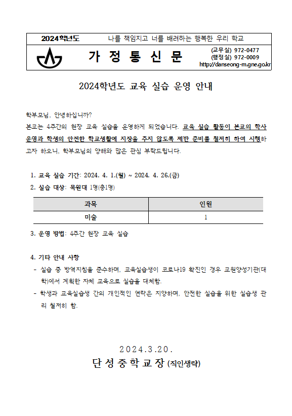 2024학년도 교육 실습 운영 안내